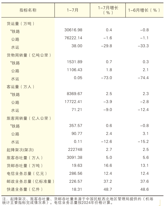 2025年1-7月交通运输邮电