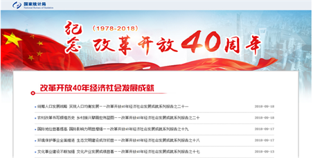 国家统计局门户网站“纪念改革开放40周年”专题网页