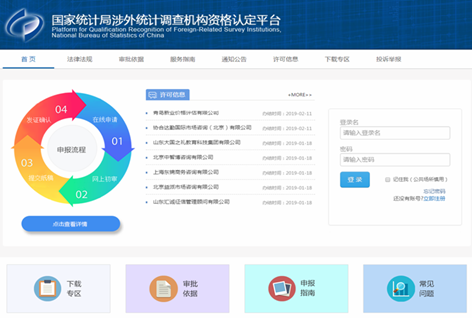 国家统计局涉外统计调查机构资格认定平台首页