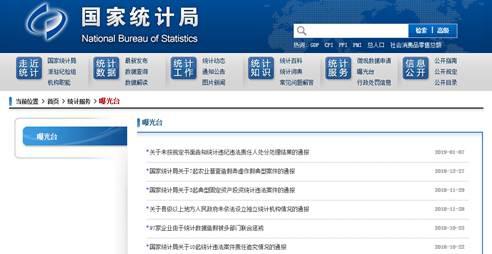 国家统计局门户网站“曝光台”栏目页面