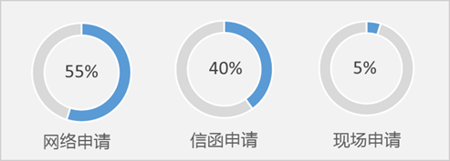1.按申请方式分,通过网络提交申请78件,通过信函申请57件,现场提交申请7件。