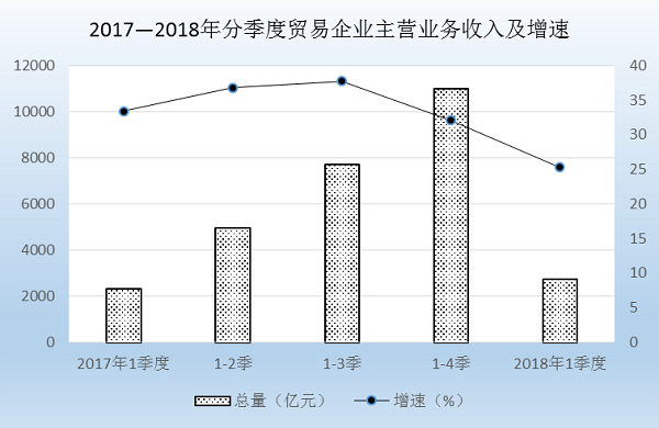 一、贸易企业主营业务收入增速回落,四大行业增速同比“两增两降”