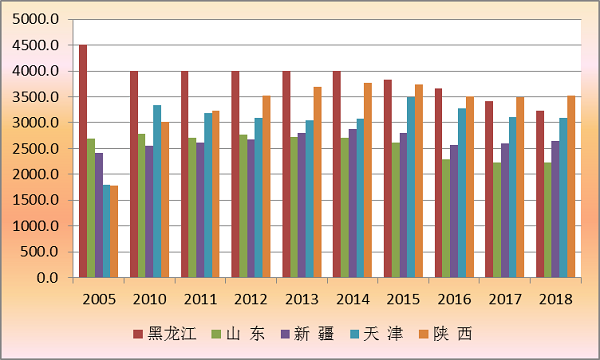 我省原油主要产自于长庆油田分公司和延长油田股份有限公司,两者产量分别占我省原油产量的67.5%和32.3%,在两大油田企业有力带动下,原油产量从2005年的1778.16万吨增长到2018年的3522万吨,占全国原油产量比重提高8.8个百分点。位次由2005年全国第五位快速提升,2017年原油产量超过黑龙江跃居全国第一位,陕西能源战略地位进一步提升。