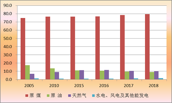 从历年发展趋势来看,由于我省煤炭资源储量大、品种多、质量优,随着国家优先开发优质煤炭资源政策的实施,我省煤炭产能加快释放,煤炭生产占能源生产总量的比重逐渐上升,2018年比重高达79.4%,较2005年提高了4.7个百分点;受价格因素影响,原油在我省能源生产总量中的比重逐渐下降,2018年较2005年占比降低了8.5个百分点;天然气、水电、风电及其他能发电等清洁能源占能源生产总量比重较2005年提高3.8个百分点。