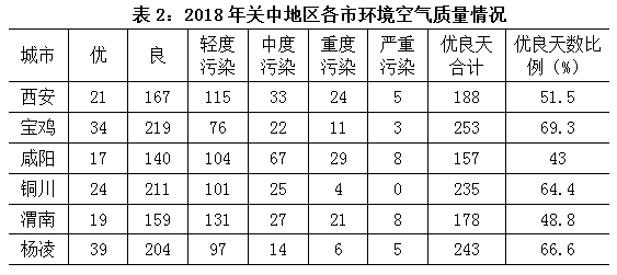 煤炭、原油、天然气等化石资源的大规模开发利用对土地、水和大气环境等造成严重影响。近年来,关中地区冬季雾霾现象频发,就是因为陕西以重工业为主的经济结构,火电、炼焦、煤化工、水泥、金属冶炼等高耗能高排放产业快速发展,带动化石燃料燃烧和工业企业排放增加,加上机动车尾气、工地和马路扬尘、生物质燃烧等产生的污染导致关中地区污染物排放总量过高,单位面积内的生产、生活排放远远超过了环境承载能力。再加上关中地区独特的地理特征和气象条件不利于大气污染物扩散,容易出现雾霾天气和排放物二次污染,导致关中地区空气污染问题十分严重(见表2)。